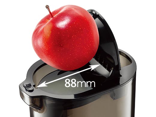 直径88mmのワイド投入口。材料を細かく切る手間を短縮し、栄養素の損失を最小限に抑えます。