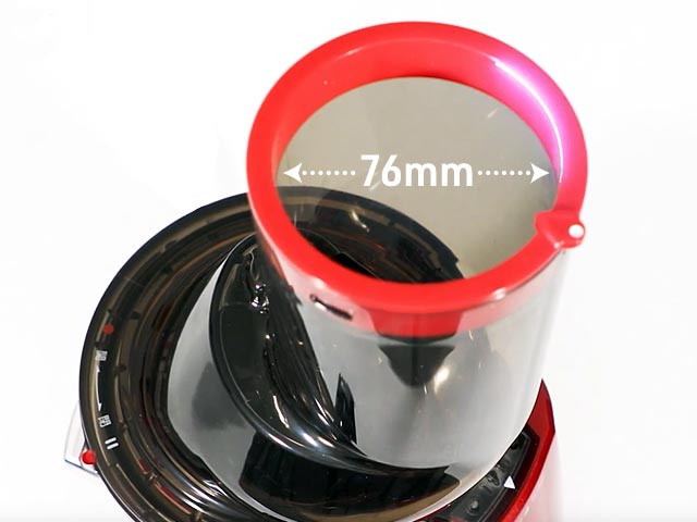 忙しい朝にうれしい時短。まるごと投入できる76mmの投入口。材料を細かく切る手間を省くことができます。
